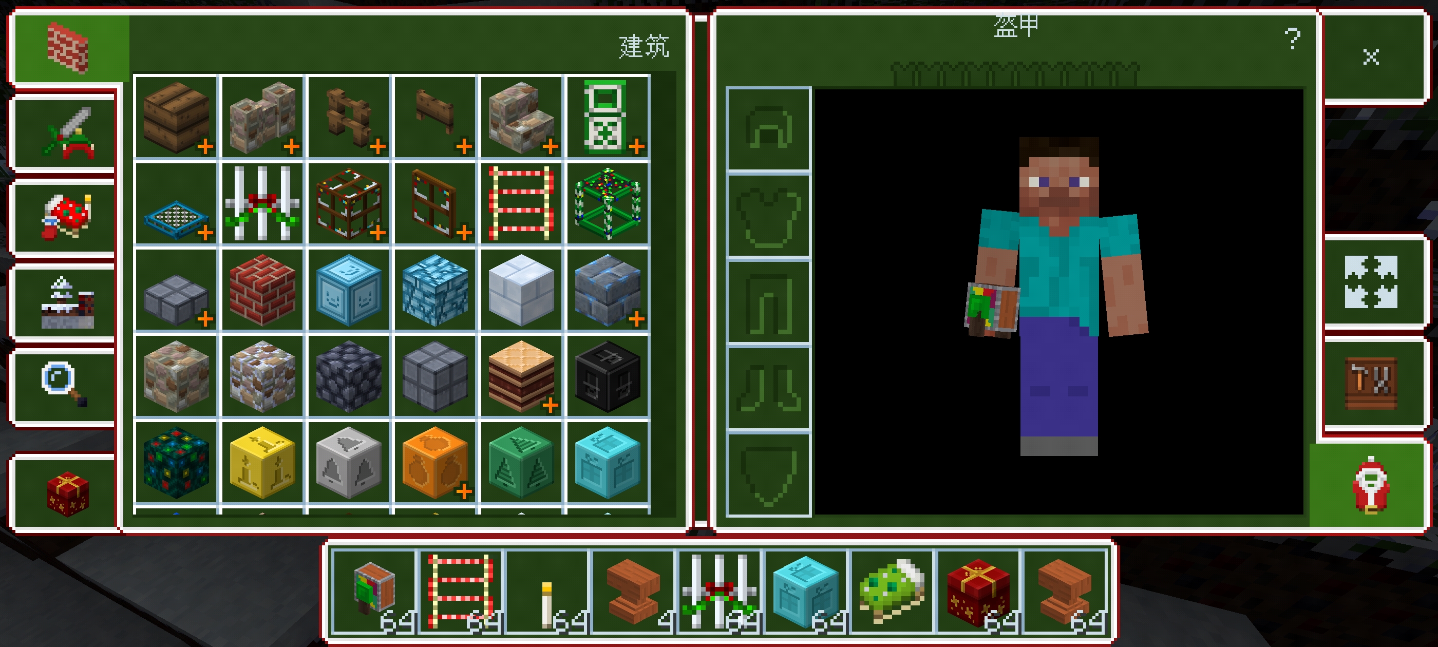 节日混搭2016(兼容最新版本) 2025-10-30 井兰麻 材质光影,其他 阅读量:5271 552 字 2 分钟阅读 本材质包兼容最新游戏版本,最低需要1.18或更高版本,物品和树叶能正常使用,有节日混搭的界面。本材质包需要红蘑菇才能下载!