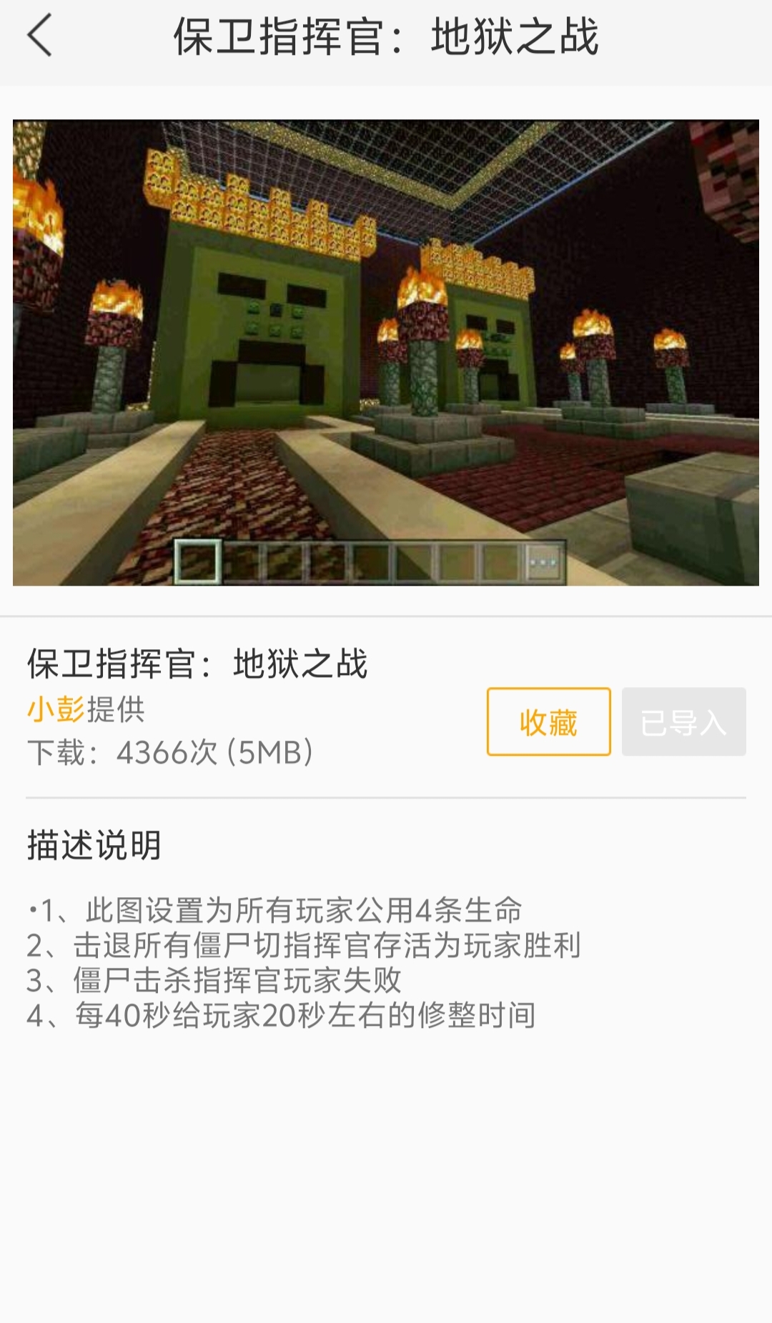 保卫指挥官:地狱之战 2025-11-07 ttbya PVE地图 阅读量:6711 531 字 2 分钟阅读 这是一张由“小彭”发布在爱玩MC上的多人PVE地图保卫指挥官:地狱之战.zip爱玩MC上的地图简介和图片:
