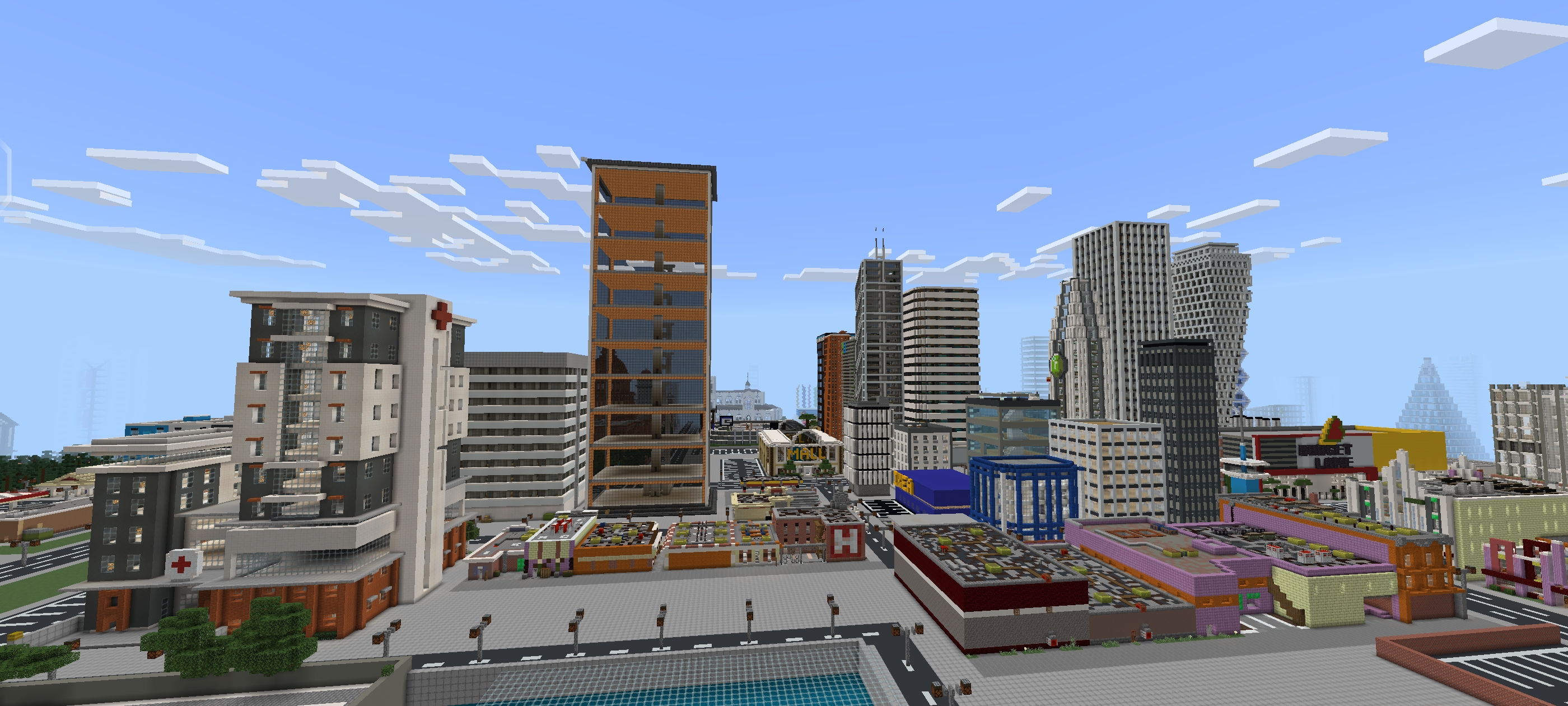 这是马维斯城重建,一张由马万德鲁,而且比原版更宽马维斯城,宽阔的四车道道路会让城市看起来更大。建筑物和原地图一样,但有建筑摆放会有所变化,所以这张地图和原版地图差别很大。你依然能感受到马维斯城的氛围,因为它拥有原地图中的所有元素,比如建筑:摩天大楼、房屋、商店、商场、超市、办公楼、写字楼、酒店、宾馆、医院、警察局、消防局、信号塔、机场、动物园、游乐场(过山车、摩天轮、旋转木马)、体育场(篮球场、足球场、棒球场)、公园等。